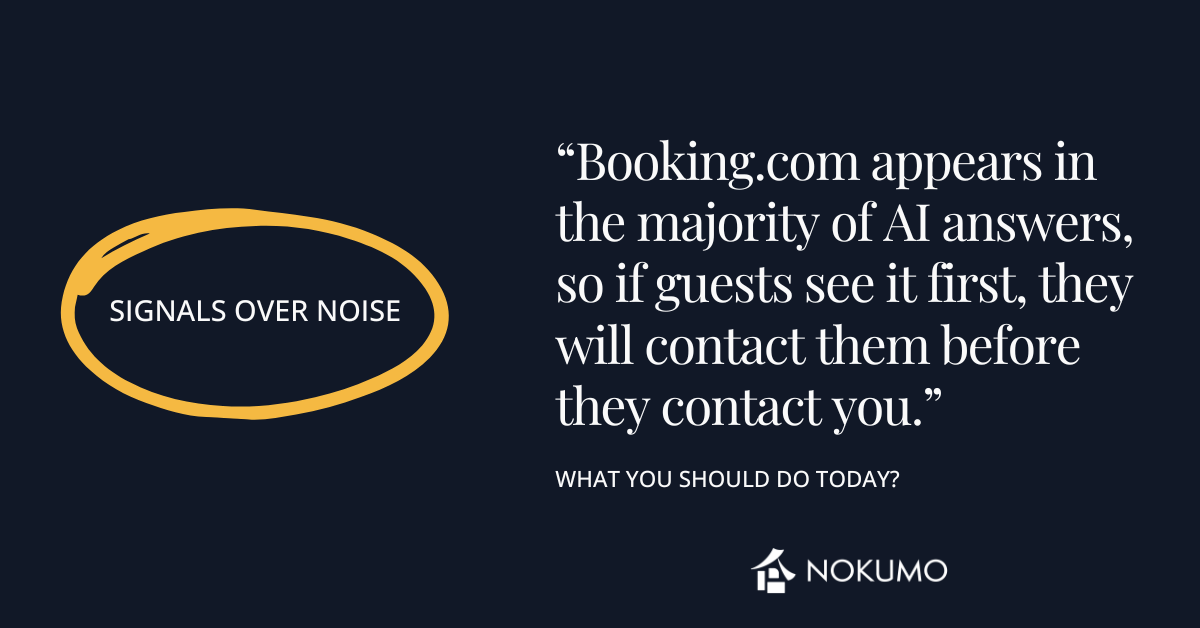 When someone asks a chat assistant about hotels, results often include booking websites. In many answers, Booking.com appears. If a guest sees their link first, they’ll tap it before they ever reach you.