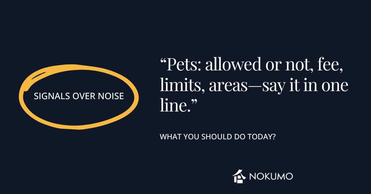 Guests with pets search for a clear rule. Vague text means they book elsewhere.