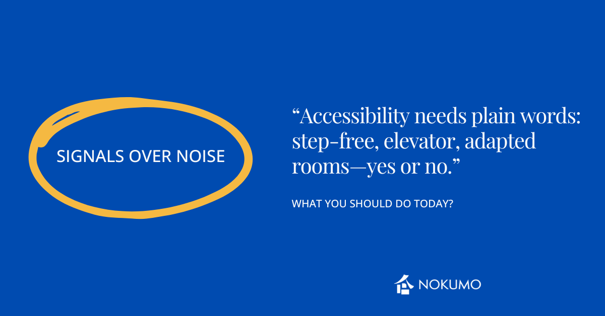 Accessibility: step-free access • elevator • adapted rooms (yes/no)